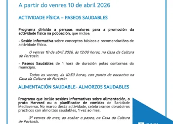 O venres 10 de abril, Portosín acollerá o Programa de promoción de Saúde da Xunta de Galicia, unha... Read More Porto do Son acolle o Programa de promoción de saúde da Xunta