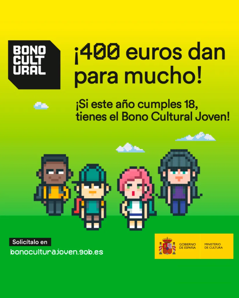 Aberto o prazo para solicitar o Bono Cultural Xove do Ministerio de Cultura, unha axuda directa de 400 euros para as persoas que cumpren 18 anos neste 2025 e adquirir e desfrutar de produtos e actividades culturais.