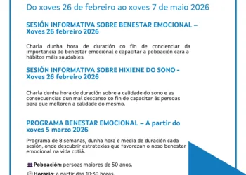 De novembro de 2025 a abril de 2026, levarase a cabo o Programa de Promoción da Saúde de Porto do Son,... Read More Programa Promoción da Saúde