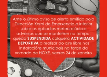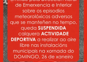 Ante o último aviso de alerta emitido pola Dirección Xeral de Emerxencia e Interior sobre os episodios... Read More SUSPENDIDA ACTIVIDADE DEPORTIVA