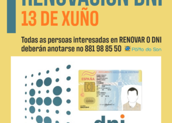 O 13 de XUÑO o equipo móbil do Documento Nacional de Identidade desprazarase ata Porto do Son 👉 Se... Read More Equipo móbil renovación DNI