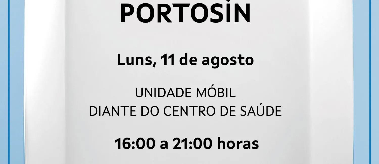 A unidade móbil de doazón de sangue estará o luns, 11 de agosto, en horario de 16:00 a 21:00 horas, diante do Centro de Saúde.