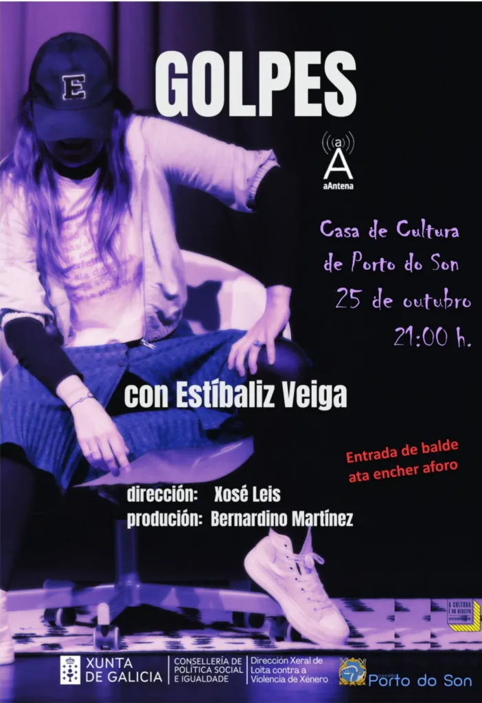 A Casa da Cultura de Porto do Son acolle, o vindeiro 25 de outubro ás 21:00 horas, a peza teatral ‘Golpes’ de Estíbaliz Veiga. A entrada será de balde ata completar capacidade.