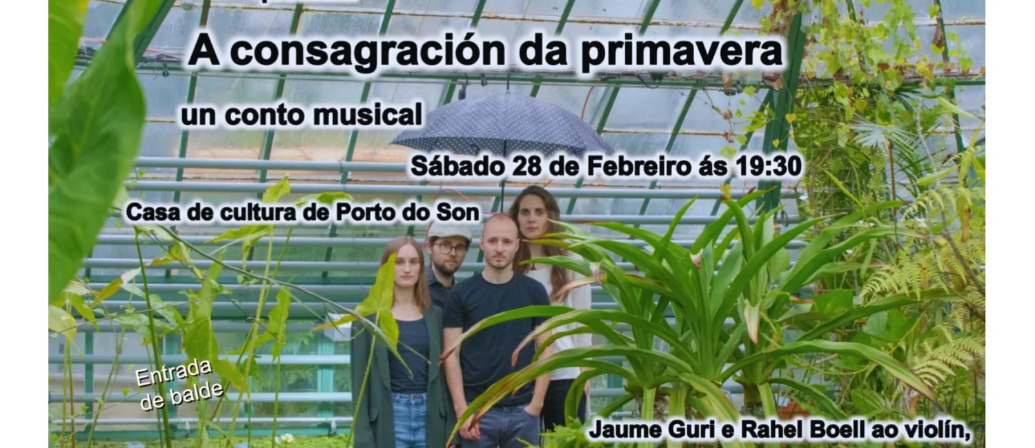 A Casa da cultura de Porto do Son acollerá o sábado 28 de febreiro, ás 19:30 h, a función ‘A Consagración da Primavera’ do grupo Il Concerto Intempestivo. O concerto ten entrada de balde ata completar aforo.