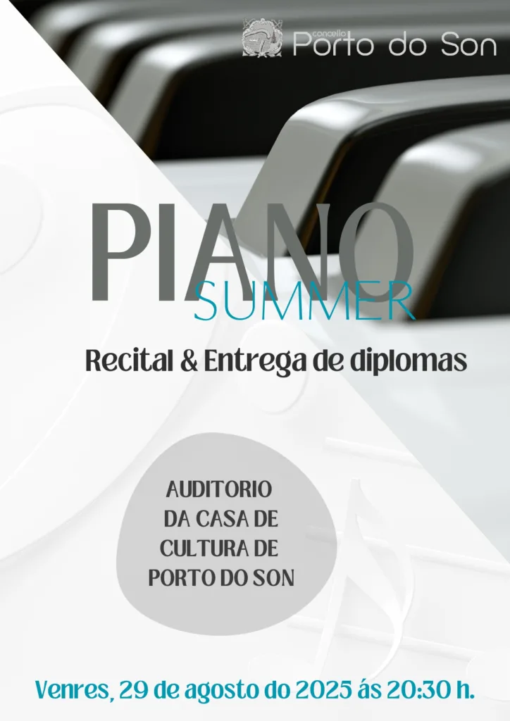Este venres, 29 de agosto, o auditorio da Casa da Cultura de Porto do Son acollerá o recital e a entrega de diplomas ás persoas participantes no curso ‘Piano Summer’.