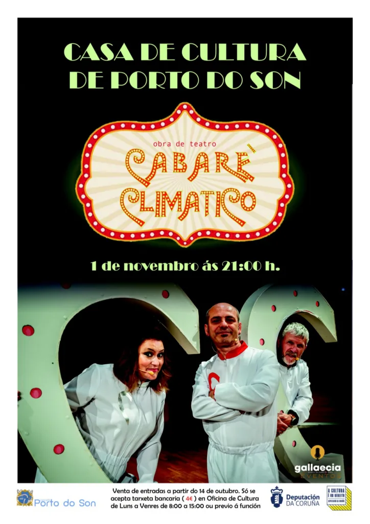 A Casa da Cultura de Porto do Son acollerá o vindeiro sábado, 1 de novembro ás 21:00 h, a obra de teatro ‘Cabaré Climático’.