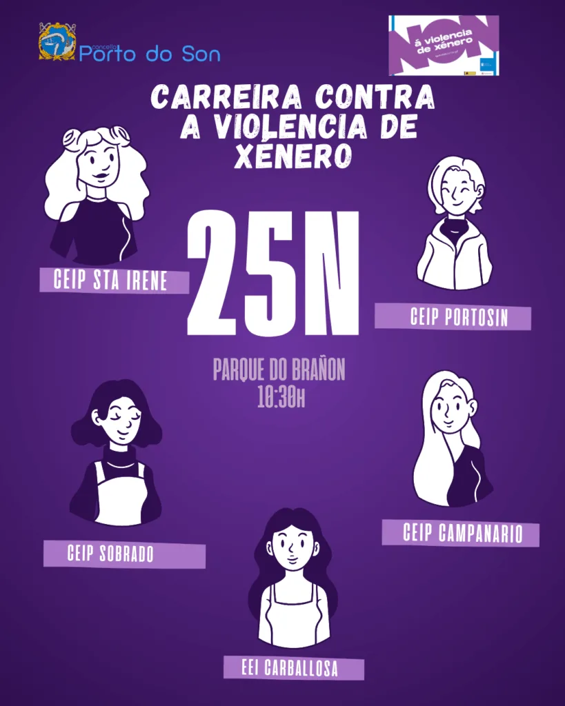 O vindeiro martes, 25 de novembro, Porto do Son acollerá a Carreira Escolar contra a Violencia de Xénero, unha actividade organizada pola concellería de Deportes e Servizos Sociais.